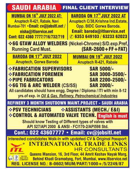 latest gulf job vacancies, gulf job news paper ads latest gulf jobs, gulf jobs news paper advertisement, latest gulf interviews in Mumbai, gulf job vacancies for Malayalee's