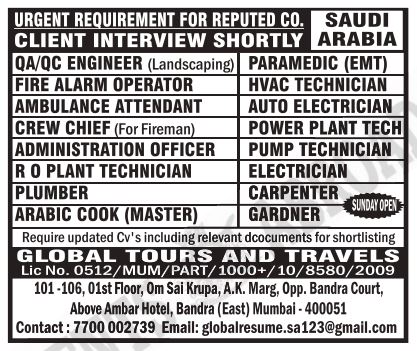 SAUDI JOBS : REQUIRED FOR REPUTED COMPANY IN SAUDI
