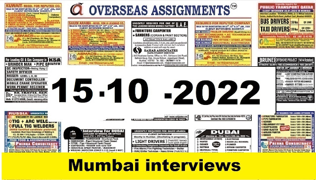 MUMBAI INTERVIEWS 20-10-2022 latest gulf job vacancies, gulf job news paper ads latest gulf jobs, gulf jobs news paper advertisement, lates...
